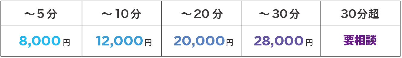 実際の料金は、完成動画の再生時間をもとに最終確定いたします。